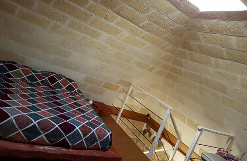 Composed of living room / kitchen with sofa bed and wonderful fireplace. Upstairs large loft with double bed and sofa bed, illuminated by the typical window on the roof of the trullo.