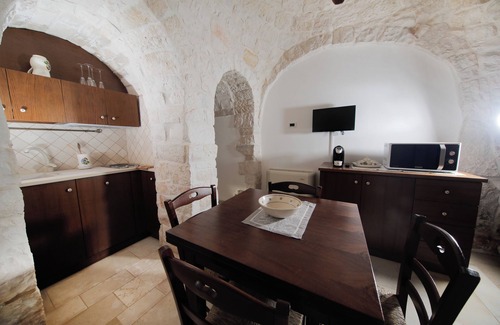 This holiday home is part of the typical trulli complex "Trulli Arco Antico", located just a few kilometers from the center of Locorotondo, in the heart of the beautiful Itria Valley.