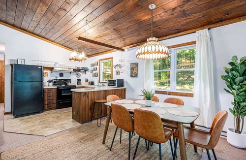 Escape to our cozy cabin retreat—perfect for families, friends, or a small group looking to unwind and reconnect in nature. This 2-bedroom cabin with comfy queen beds comes fully stocked with outdoor fun: enjoy a game of cornhole, volleyball, horseshoes, or kick around the soccer ball in the spacious yard.