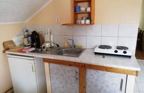 Tuja Vendégház is a recently renovated apartment in Lajoskomárom where guests can make the most of its free bikes and garden. This property offers access to a terrace and free private parking. Guests can access the apartment via private entrance. The units come with tiled floors and feature a fully equipped kitchenette with a microwave, a dining area, a flat-screen TV with satellite channels, and a private bathroom with shower and a hair dryer. A patio with an outdoor dining area and garden views is offered in all units. At the apartment complex, every unit has bed linen and towels. Guests can make the most of the warm weather with the property's barbecue facilities. Guests at the apartment will be able to enjoy activities in and around Lajoskomárom, like hiking. The apartment complex has a picnic area where you can spend the day outdoors. Bella Stables and Animal Park is 18 miles from Tuja Vendégház, while Bebo Aquapark is 19 miles away. The nearest airport is Hévíz–Balaton Airport, 75 miles from the accommodation.