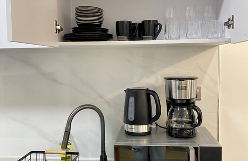 The apartment opens into a bright, modern living space with tasteful décor, plush seating, and a smart layout that makes you feel right at home. Whether you're catching up on work, unwinding after a day out, or enjoying a home-cooked meal, the space is crafted for comfort.