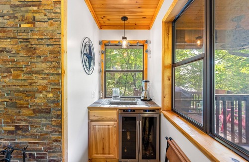 NEW TO VACATION RENTALS 2024! You'll be impressed when walking in this the awesome beverage bar and wood stove/fireplace, new 75" tv, to the updated kitchen cabinets and bathrooms. There's space to bring the entire crew to enjoy all the lake has to offer! The main floor offers a large bedroom with king bed, bathroom, laundry room, kitchen, dining and , the best part is the great screened in deck to enjoy outdoor living year round. Then, head downstairs and you'll find another living area that is furnished with a twin bed with trundle, 2 more large bedrooms (one is a bunk room that sleeps 6!), and a large updated bathroom. You'll appreciate the outdoor entertaining space as well - it's where you will want to spend most of your time! This home offers an incredible dock with a slip for your PWC, a HUGE swim platform, 4 kayaks and a water mat, and a super cool observation deck with high dive that you will NEVER want to leave! The owner has a boat in the boat slip but you can tie up to the side of the dock. This home is family friendly and in an ideal location toward the back of a cove at the 2.5 mile marker of the Niangua Arm in beautiful Lake of the Ozarks. It is close to the Cave Bar & Grill, Nautifish Rum Bar, Captain Ron's Bar & Grill, and local marinas. You can always book with confidence through Four Seasons Property Management, Lake of the Ozarks!