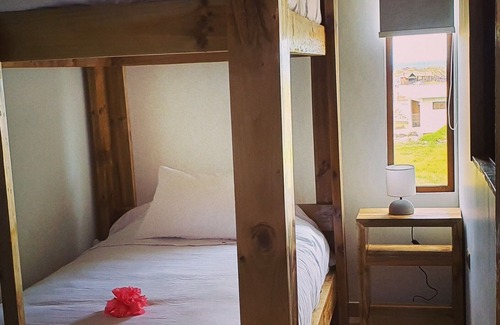 Tenemos 8 cabañas disponible todas con baño privado, 2 dormitorios, principal con cama de dos plazas y dormitorio 2 con litera, cocina ameriana living, terraza amplia con vista al mar y patio interior . A 1 min de la costa con los mejores atardeceres . Cerca la calle principal donde encuentras restaurantes, minimarket, verdulería , feria artesanal , farmacias ,entre otas . ven a disfrutas de nuestra cultura .