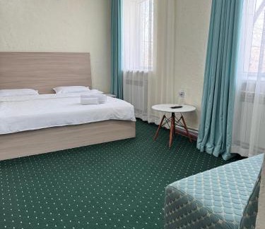 Turan is located in Karagandy and features a bar. Among the facilities of this property are a restaurant, room service and a 24-hour front desk, along with free WiFi throughout the property. The hotel has family rooms. The hotel will provide guests with air-conditioned rooms with a desk, a coffee machine, a fridge, a microwave, a safety deposit box, a flat-screen TV and a private bathroom with a shower. Turan has certain accommodations that have a balcony, and rooms come with an electric tea pot. The rooms feature a closet. You can play table tennis at this 4-star hotel. Sary-Arka Airport is 23 miles from the property.