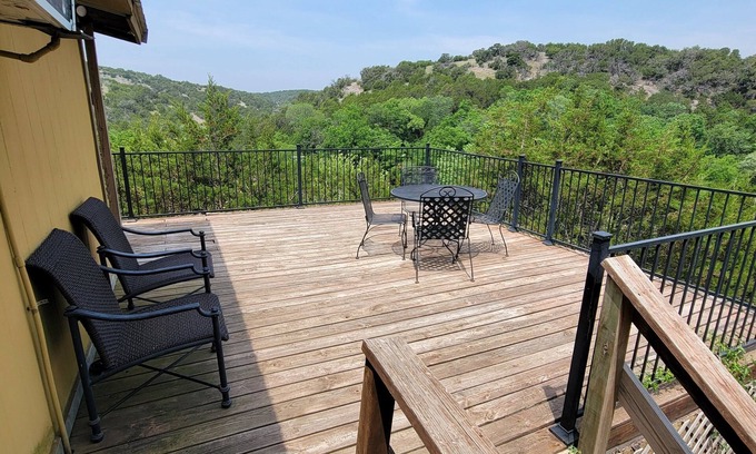 Turner Falls Cabins Villa 1 overlooks the river and mountains. It has a large, uncovered deck and sleeps 4 or 5 people. Waterfall inside the Turner Falls Park. Within Walking distance of the cabin. Cabins in Turner Falls Oklahoma is one of the beautiful spots for cabin rental in Davis Ok. This is a five minute walk to the main swim area in Turner Falls
