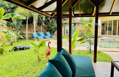 Exclusive Beach-Style Pool: Immerse yourself in the crystal-clear waters of our stunning beach-style pool, surrounded by lush greenery. Lounge on comfortable sun loungers or take a refreshing swim in this tropical oasis.