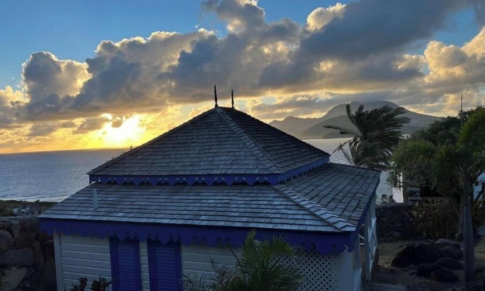 A cottage has the most beautiful ocean and Nevis view , located in a 1.5 aces land in turtle beach , the prime location for successful local people and international investors . The landscape is very beautiful and matured since it’s the first house built in this area. The litter lovely cottage is about 30 meters from the main house, has its own privacy, best for a couple looking for a romantic stay or a single for a get away. 5 minutes walk to the beach and 3 minutes drive to the Park Hyatt