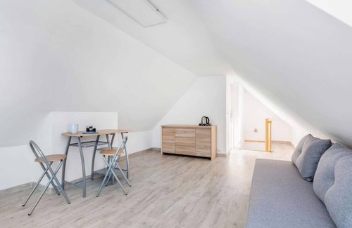 Turystyczna 2B apartment is a perfect holiday spot for a trip with family and friends. This spacious 100 meters square apartment can comfortably accommodate up to 8 people. The 3-bedroom apartment consists of a living room, a kitchen, and 2 bathrooms with a shower. Travelling with small children? No worries, the apartament can also be equipped with a cot and baby's high chair at the request. Bright walls lighted by the sun from the windows on the slanted walls, and wooden stairs give this apartament a unique character. The comfort of every stay is assured by modern amenities, such as a free WiFi connection, a flat-screen TV, and an extensive range of kitchen and bathroom appliances.