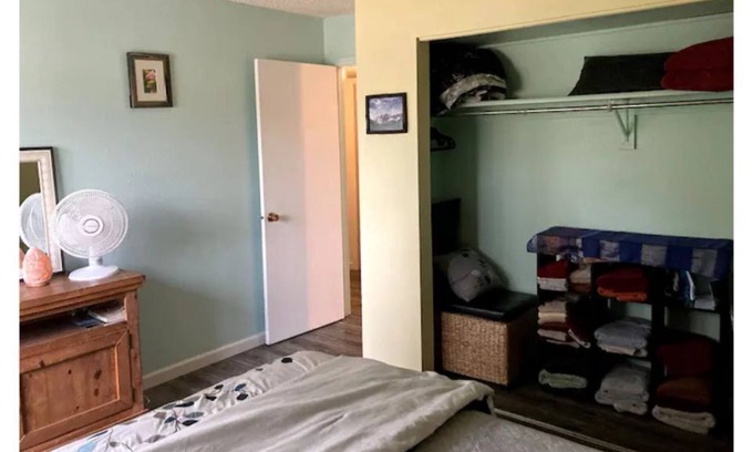 Your room includes a comfortable queen bed, full closet and dresser. Your bathroom is stocked with toiletries and towels. The kitchen has all of the amenities you need for cooking meals or just making coffee or tea. The pull out couch in the living room accommodates two extra people in your party.