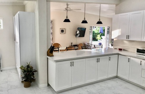 Enjoy an unforgettable vacation in our bright, spacious and newly renovated 3-bedroom bungalow. It is the perfect place to relax for couples and families alike. Enjoy a beautifully appointed home complete with a gourmet kitchen, new pool and cozy, beach-style furnishings.