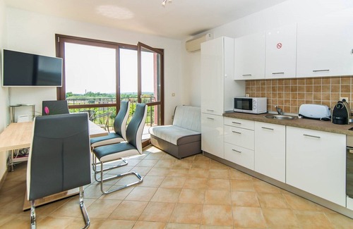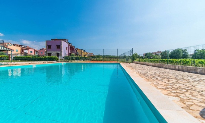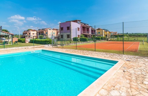 In a quiet and picturesque suburb of Porec, you will find an oasis of peacefulness, which is important for your ideal vacation. The apartment Gordana Ghedda is located on the first floor of an apartment house. This is apartment for 4-5 persons with a living area of 50 m2. The unit features a living room with a sofa bed and a dining area - all in the same room, two bedrooms with double beds, a bathroom with a shower and a washing machine, and a balcony with a seating area. The living room and the kitchen are equipped with air conditioning. Apartment complex Gedici has a large communal swimming pool and a tennis court. Swimming pool and tennis court are available to all guests. The pool has an area of 200 m2. Parking is located in front of the apartment. The common pool is open from 01/06 - 30/09.