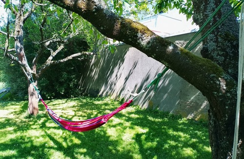 This is an ideal place for parents with young children. You can enjoy the large garden with a barbecue, hammocks and a swing. It's a bit like the countryside in the city...