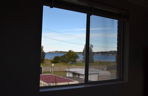 1st floor two bedroom apartment with sweeping views of Batemans Bay and the Clyde River from both bedrooms and living areas. Older style apartment within Rio Rita Caravan Park. Sleeps 5 people, additional bedding can be available upon request if required. Only 100 metres to the beach and a 5 minute walk to the town centre. Main bedroom queen bed and second bedroom double bed bunk with single bed on top.
