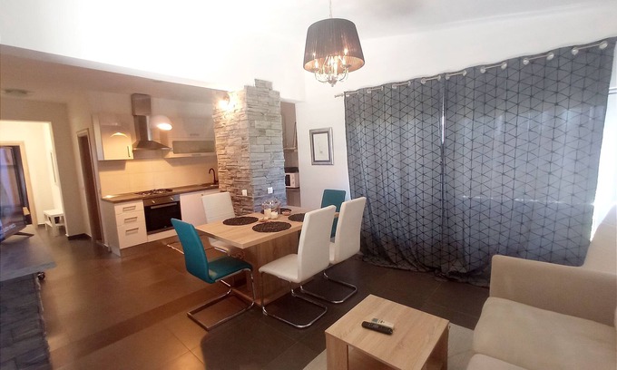 Apartment can accommodate 4 guests. Beds are situated in 2 sleeping rooms, within 60m2. Guests can use a private terrace to enjoy the warm summer evenings. Food can be prepared using barbecue which is shared with other guests too.