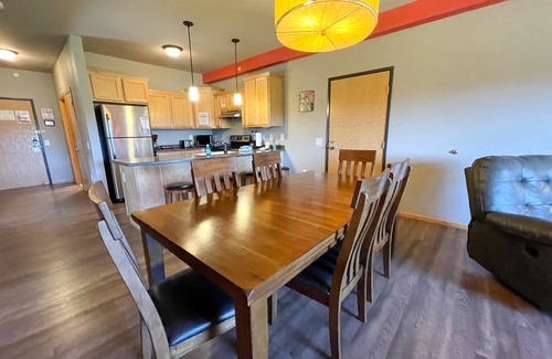 Escape the overcrowding and enjoy your next Dells trip with many of the conveniences of home. This spacious condo comes with two bedrooms and sleeps 8 guests total. The Master bedroom has a king-size bed while the second bedroom offers two queen beds. Each is furnished with a 32" TV.