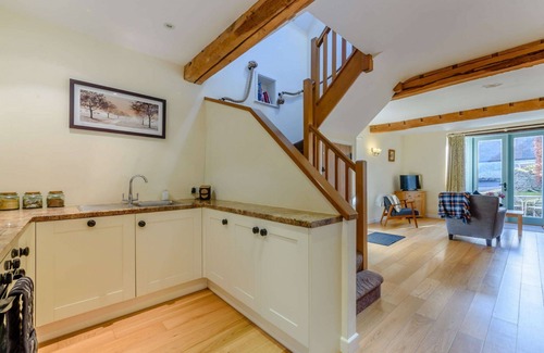Will's Cottage is an elegantly presented Cotswold stone holiday home near Stroud which sleeps 4+2 guests, in two well-appointed bedrooms, with the +2 option being a double sofa bed in the living room, with a modern family bathroom. Once the farm's granary, this wonderful home away from home has been cleverly designed with socialising in mind, with an open-plan ground floor living area, which boasts a well equipped kitchen, large dining area and a cosy living room with beautiful French doors which open out onto the tranquil patio, offering superb views of the countryside beyond. Complemented with modern facilities, the original character features have been lovingly retained including high vaulted ceiling in the bedrooms and wooden beams throughout the property. Will's Cottage is the perfect retreat for a country escape with family or friends.