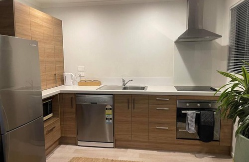 This newly constructed, stylish, self-contained 2-bedroom house was just released to our whanau. This house is designed to provide all the necessities, it includes, a treadmill for exercising, 60-inch TV with latest high speed Wi-Fi, local TV, Netflix and Disney+ for entertainment. While there are plenty of parking spaces at the front of the house as well as an internal access garage for car parking. There are 2 bedrooms in the house, the first with a queen size bed, and the second with 2 single beds and 1 trundle bed. The living room has an extra sofa. There are also other facilities such as a full kitchen and free tea and coffee. Furthermore, linen, towels and Face towels are provided. A number of other facilities are provided, including an oven, jug, toaster, dishwasher, microwave, toilet paper, dishes and cutlery, pots and pans, and utensils.