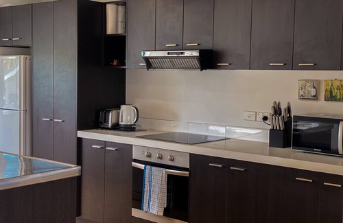 Kitchen is equipped with a dishwasher and oven. A microwave, toaster and kettle are also provided.