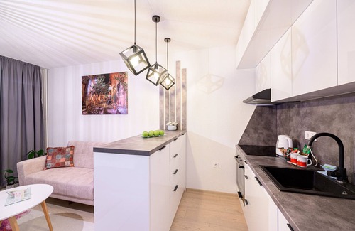 Two bedrooms apartment, 10 min far away from airport is located in Novi Grad Sarajevo. Two bedrooms apartment, 10 min far away from airport provides accommodation, featuring Wellness Facilities, Fireplace/Heating, Child Friendly, among other amenities. This Apartment features Wellness Facilities, Fireplace/Heating, Child Friendly, to make your stay a comfortable one.