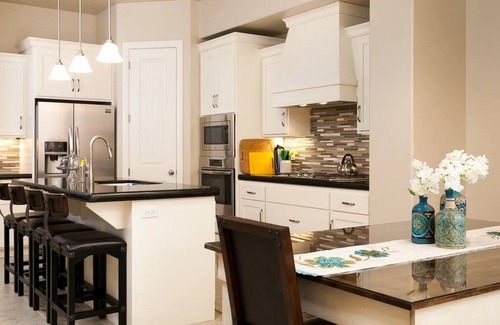 The kitchen is equipped with a stove, oven, microwave, fridge, and small appliances including a coffee maker and blender as well as all the needed dishes, utensils, and basic cooking items to make your stay just like home! The space is fully furnished with comfortable high-quality luxury furniture and linens. There are four bedrooms, but a bean bag sleeper pulls out into a queen-sized bed in the TV room. The home has a small backyard equipped with a natural gas BBQ and seating for 12. It also has a front courtyard with additional seating. This property has all the amenities needed for a relaxing vacation and is fully stocked with all the essentials. The complex has access to two beautiful pools (heated all year round) and hot tubs that are a 5-minute walk from the home. There is also a clubhouse that has games, foosball, and a gym! The Clubhouse can be rented to groups. High-Speed Internet - 500mbps fiber. Smart TVs are available on all TVs.