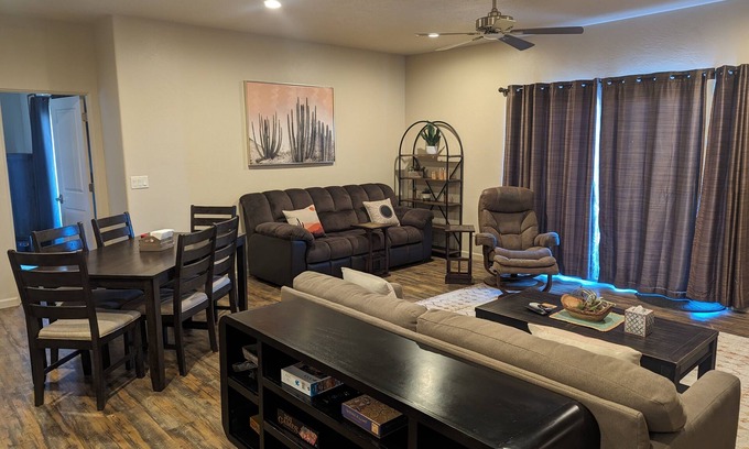 This condo is in a very quiet community proud of its dark skies at night perfect for stargazing and beautiful views during the day. Breathtaking contrasts with each sunrise and sunset. Has a nicely stocked kitchen for preparing your own meals and relaxing. Just minutes away from restaurants and shopping.