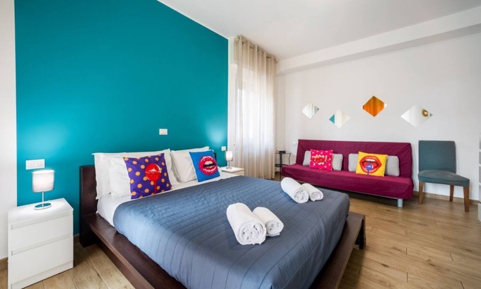 Two-room apartment with pop art vibes is located in Borgo Milano. Two-room apartment with pop art vibes provides accommodation, featuring Internet, Kitchen, Parking, among other amenities. This Apartment features Internet, Kitchen, Parking, to make your stay a comfortable one.