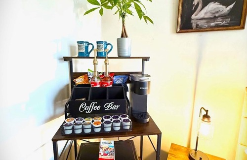 This charming home stands on the historic site of Brenham’s first German Lutheran Church, with original elements like the front steps & concrete foundation still preserved from the church that once stood there. Though the church was lost around 1900, the Brenham House rose in its place circa 1920. The Brenham House, a piece of Texas heritage—come be part of the story. The whole group will enjoy easy access to everything from this centrally located place. Featuring 2 bedrooms (one king & one queen), a living area with a full size futon sleeper, 2 full bathrooms, 2 iced and hot coffee stations, 2 mini fridges, 2 microwaves, FuBo Sports and Live TV on 3 tvs, washer/dryer, and more.