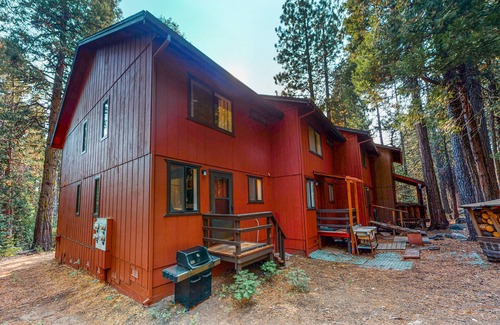 Perfect for a small family, this two-story condo is located behind the Camp Connell Store and is a short drive from Bear Valley Ski Resort! Spend a cozy evening at home snuggling up on the furniture while watching TV or planning your next moves. The high-speed WiFi available will help you search for the best attractions and restaurants nearby for an unforgettable time with your loved ones. Friendly competition will be easy to come by with the cornhole set and other outside games. End each dreamy day on the front deck with Adirondack chairs and nighttime cafe lights!