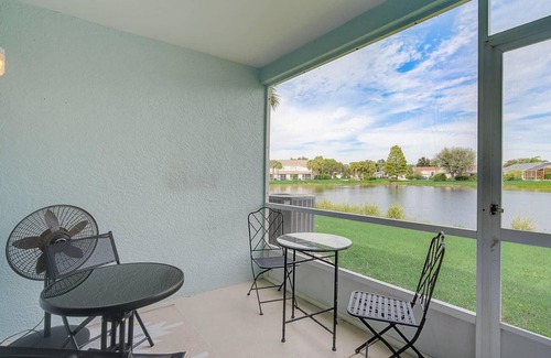 Screened private Lanai with seating and views of the lake.