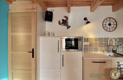 - Ground floor: living room with equipped kitchen. - Floor: 1 mezzanine bedroom (1 160x200 bed) with shower and sink, separate WC. - Exterior: sheltered terrace and bicycle storage facing the house. Parking in a free car park at the back of the house. In the heart of the village of Roche Jaune, this small, comfortably renovated holiday home offers you a stay 500 m from the GR34, for magnificent walks. For those who love beautiful landscapes, have a drink or taste the famous oyster fritters with their feet in the water, head to La Cabane à Huîtres, at Pascale and David's, an address very popular with locals and vacationers who love Trégor delicacies. . On Thursdays, between 5 p.m. and 7 p.m the local and organic products market invites you to stock up on fresh products (breads, vegetables, cheeses, fruits, fish, shellfish, organic pizzas), all made just a stone's throw away. And, every day, 100 m away: you can do your shopping at the Roch'Melen grocery store.