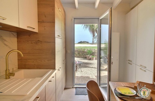 Your vacation rental includes on the ground floor a kitchen (well-appointed) living room with a sea view on one side and a courtyard view on the other. Upstairs, 1 bedroom (1 bed 140x190) with a sea view, 1 bedroom (1 bed 80x200), shower room with toilet. Garden with sea view and terrace on the courtyard side. Private parking at the rear; parking possible in front on the sea side. Tastefully furnished apartment in a former hotel with a garden level sea view, ideal for a couple with a child. Building adjoining other seasonal rentals. Are you looking for a cozy nest for your next vacation with a view of one of the most beautiful beaches in Trégastel - Tourony? Ty Tourony awaits you with a breathtaking view of the castle of Costaeres! This privileged location in the heart of the Pink Granite Coast will seduce you with its numerous activities on site or a few meters away: swimming, hiking on the GR34 which is 20 m away, paddle & kayak are available 500 m away on the beach of Quo Vadis, cycling, tennis, skate park 700 m away... unless you prefer to enjoy the garden with a sea view while reading. In Trégastel you can stroll around the market on Monday, one of the largest in the department in the summer, swim in the sea forum (aquatic complex with sea water heated to 30 °), and enjoy the breathtaking landscapes along the customs officers' path. The resort of Perros Guirec is 4 km away (its beaches, its port, its casino and its thalassotherapy center), Lannion is 13 km away - a town of art and history