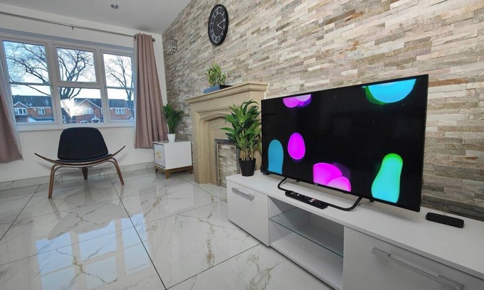 This newly renovated modern property with a large private garden and unique mood lighting in the downstairs rooms is located a 20 minute drive from Birmingham City Centre. Large driveway at the front of the property with space for 3 cars makes this an ideal home from home for contractors or families coming to enjoy all Birmingham has to offer. The local area has some shops for your convenience just a short walk from the property and the transport links to the City Centre are superb.The whole place can accommodate up to 7 people!