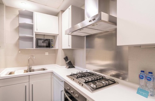 GeneralPing - 24.8, Number of bedrooms - 1, Stovetop, Separate dining area, Kitchen, Shampoo, Bed count minimum 1, Hair dryer, Microwave, Laptop-friendly workspace, Bathtub or shower, Towels provided, Number of living rooms 1, Free toiletries, Number of bathrooms - 1, Cookware, dishware, and utensils, Private bathroom, Square feet - 882.6, Square meters - 82, Desk, Separate sitting area, Oven, Refrigerator, Bed count maximum 1, City view |