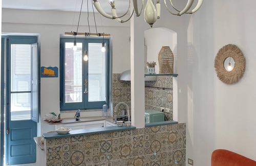 A typical Carlofortina house recently renovated, located in the centre but in a quiet area a few steps from the port, the square, restaurants and all services. The lovely flat, with exclusive access, of which the original furniture has been recovered and restored, belonged to a historic mayor of Carloforte.