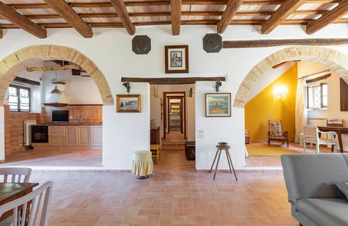 Surrounded by greenery, Villa Giusi is a typical example of the farmhouse that characterises Le Marche countryside. Arranged on two independent floors,