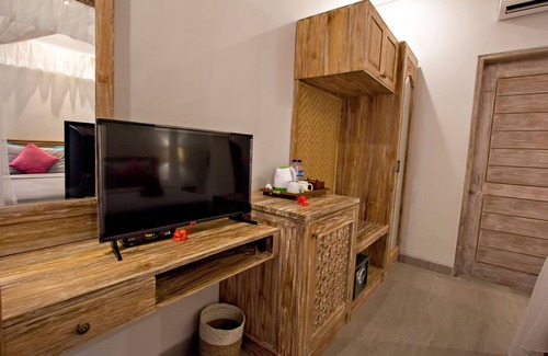 All rooms are framing the communal pool, equipped with complete facilities (TV, AC, private bathroom with shower and bathtub, coffee & tea maker facilities, slippers, etc) for your comfort.