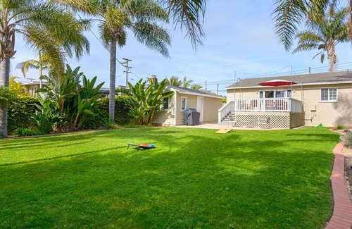 Ultimate beach bungalow w/huge yard - 1 block to beach is located in Carlsbad. Ultimate beach bungalow w/huge yard - 1 block to beach provides accommodation, featuring Accessibility, Sports/Activities, Bedding/Linens, among other amenities. This House features Accessibility, Sports/Activities, Bedding/Linens, to make your stay a comfortable one.