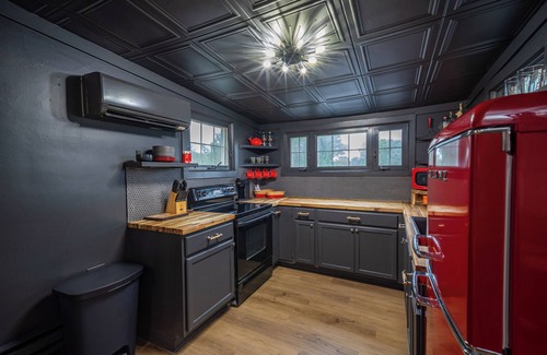 This 2 bedroom rental has been custom designed from top to bottom with every small detail incorporated. Featuring the smallest Bourbon Museum in the world. Take a step back in history and learn more than you could have possibly known about the World of Bourbon. From the beautiful bar, to the amazing artwork, to the old school Ms Pacman we have created a space to not only come and relax but also spawn lots of beautiful conversations while creating amazing memories. Located within walking distance of the Expo Center and a short 5-10 minute drive to Churchill Downs, Six Flags and much more. This is a true destination property. This is a 3rd floor unit with steps access only. Be take into consideration when booking that you will have several sets of stairs to gain access to the property.