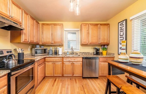 The fully-equipped kitchen and dining area are ideal for sharing meals at home. The comfortable living room is perfect for relaxing after a busy day. You can step out and enjoy the beautiful wrap-around front porch, or have a cookout on the back deck with our grill.