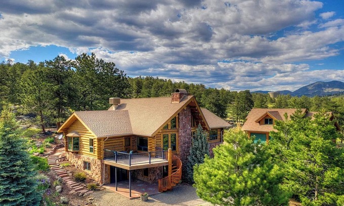 Nestled on 40 pristine acres, this iconic log cabin offers a perfect blend of beauty, access, and privacy and is an ideal retreat for families and responsible groups. Just a bike ride or walk away from renowned trail systems and only 10 minutes from town, you’ll enjoy the best of all worlds: seclusion, convenience, and adventure. With Denver and Rocky Mountain National Park both just an hour away, and Boulder 15 minutes away, the choice is yours: wilderness or urban fun. The property is equipped with luxurious amenities, including a barrel sauna, cold plunge, and hot tub. Kids will love the playground, while the spacious grounds provide ample room for dogs to roam freely (there's also a dog run for extra security and peace of mind). Cozy up by the fireplace during the chilly seasons - or bask/grill on the deck(s) in the Summer sun before jumping in the creek (5 min walk). Whether you're seeking a Winter Wonderland, Summer fun, nights out, or anything in between - this iconic log cabin is yours to enjoy.