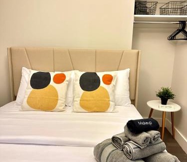 Food & DrinkTea/Coffee makerBathroomTowels, Body soap, Bathtub, Toilet paper, Bathtub or shower, Conditioner, Shampoo, Toilet, Hairdryer, Private bathroomMedia & TechnologyFlat-screen TV, TV, Streaming service (like Netflix)GeneralAir conditioning, Trash cans, Heating, IronKitchenKitchenette, Stovetop, Toaster, Kitchenware, Washing machine, Refrigerator, Dryer, Coffee machine, Microwave, OvenLiving AreaSitting area, SofaBedroomWardrobe or closet, LinensBuilding CharacteristicsPrivate apartment in buildingPhysical distancingSingle-room AC for guest accommodation |