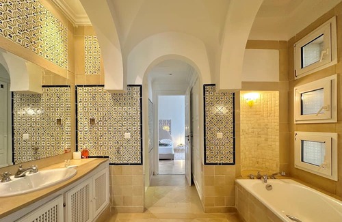Welcome to our exclusive and opulent villa, nestled in the prestigious neighborhood of Sidi Bou Said. Indulge in the epitome of luxury as you step into a world of grandeur and sophistication. With its five stunning suites, one lavish bedroom, cutting-edge technology, and a plethora of amenities, this villa promises an unforgettable stay.