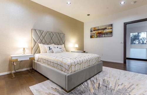 Luxury Living at its finest! Gated, Modern, 4 Bedroom Centrally Located to Hollywood, Universal Studios. Amazing backyard with infinity edge pool, sunken firepit seating area and BBQ Area. Close to restaurants. Master suite impresses with large exquisite master bath, luxurious LED illuminated closet, and of course a balcony deck overlooking your stunning oasis. Everything you need to enjoy the perfect stay in Los Angeles. Pool heating 100/ day. Spa heating 50/day