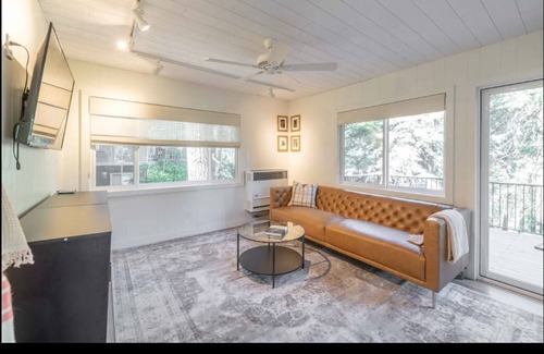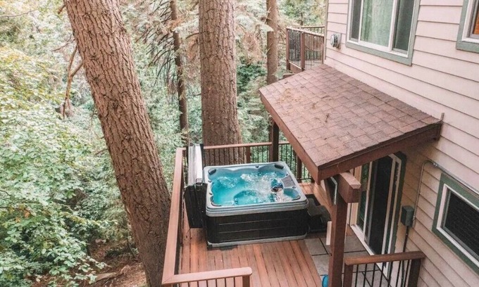 Keep it simple and serene at this peaceful, ultra-private and centrally-located cabin in the trees. That Red Door draws you to the mountains with 360 forest views to escape the city. BBQ on the outdoor deck and soak in the new outdoor jacuzzi spa after a day of exploring charming arrowhead.