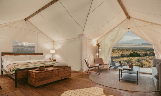 3.7 miles from Wilson Arch in La Sal, ULUM Moab features accommodations with access to a hot tub. With mountain views, this accommodation provides a patio. There's a sun terrace and guests have access to free Wifi, free private parking, and an electric vehicle charging station. The air-conditioned luxury tent consists of 1 separate bedroom, 1 bathroom with bathrobes and free toiletries, and a seating area. Towels and bed linen are provided in the luxury tent. The accommodation has a fireplace. Guests at the luxury tent can enjoy an American breakfast. At the property, there is an modern restaurant serving American cuisine as well as vegetarian options. Yoga is available at the property. If you'd like to discover the area, cycling and hiking are possible in the surrounding area, and ULUM Moab can arrange a bicycle rental service. Cataract Canyon is 21 miles from the accommodation. Canyonlands Field Airport is 42 miles away.