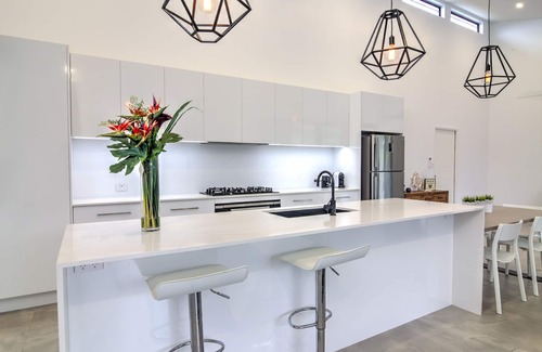 Built to the highest of standards, features 5m high cathedral ceilings and a modern, sophisticated interior designed to enjoy tropical Port Douglas - fully air-conditioned, all windows and doors are louvre-opening with crimsafe screens to maximise the sea breeze.