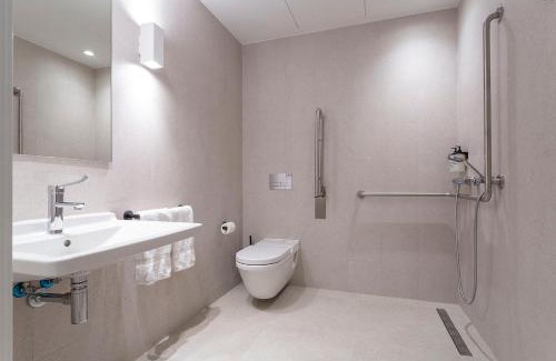 Food & DrinkTea/Coffee makerBathroomHairdryer, Walk-in shower, Private bathroom, Towels, Toilet paper, ShowerGeneralAir conditioning, Ironing facilities, Heating, Safe, Smoke Alarm, IronMedia & TechnologyFlat-screen TV, TVOutdoorsBalconyKitchenCoffee machine, Refrigerator, Electric kettle, KitchenLiving AreaSitting area, Sofa, DeskViewCity view, ViewBedroomLinensAccessibilityAdapted bath, Upper floors accessible by stairs only, Toilet with grab rails, Raised toilet, Entire unit wheelchair accessible, Lower sink, Roll-in shower, Hearing accessible, Upper floors accessible by elevator, Accessible by elevatorRoom AmenitiesSofa bed |