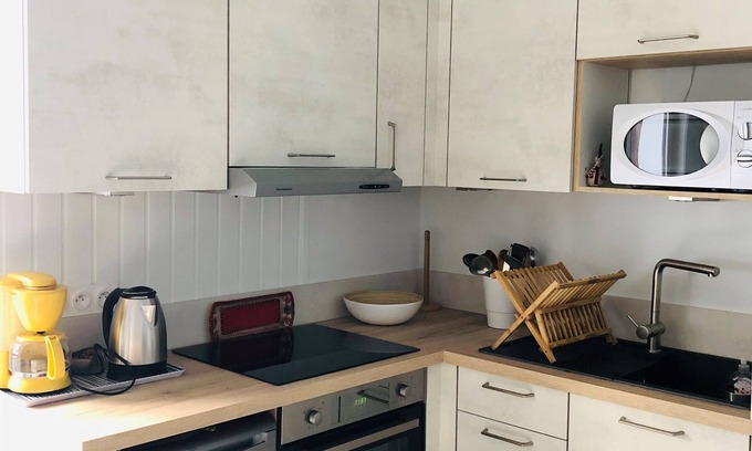 Prepare a home-cooked meal in the kitchen, complete with an oven, a stovetop, and a refrigerator, as well as a coffee maker, an electric kettle, and a microwave. Bathroom amenities include a hair dryer and toilet paper. And there is a laundromat nearby so you can pack a bit lighter. Other amenities include a sofa bed, an ironing board, housekeeping, and heating.