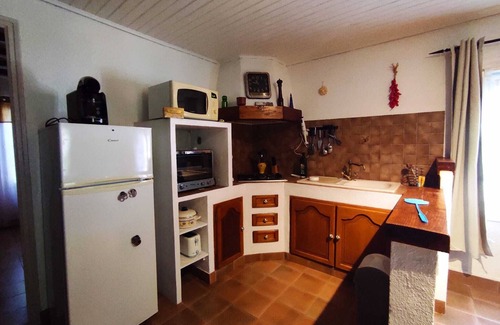 Equipped terrace, garden and pool access in common with the owners. Quiet area in pleasant village located between sea and Cevennes.