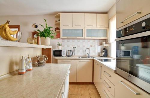 BathroomBathtub or shower, Hairdryer, Toilet, Private bathroom, Towels, Toilet paper, Guest bathroom, ShowerMedia & TechnologyFlat-screen TV, TV, Satellite channelsGeneralAir conditioning, Ironing facilities, Private entrance, Key access, Heating, Tile/Marble floor, Soundproof, Iron, Trash cansKitchenWine glasses, Stovetop, Dishwasher, Kitchenware, Electric kettle, Oven, Dining table, Kitchen, Refrigerator, Kitchenette, Washing machineOutdoorsTerrace, Outdoor furniture, BalconyLiving AreaSitting area, SofaViewMountain view, Landmark view, Quiet street view, View, Garden view, City view, Sea viewBedroomLinens, Wardrobe or closetBuilding CharacteristicsSemi-detachedRoom AmenitiesSofa bed, Drying rack for clothing, Clothes rackFood & DrinkBottle of waterCleanliness & disinfectionHand sanitizer |